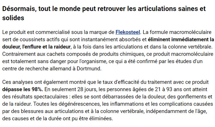 - Restauration des ligaments et cartilages endommagés (la crème pour les articulations Flekosteel déclenche une régénération complète)